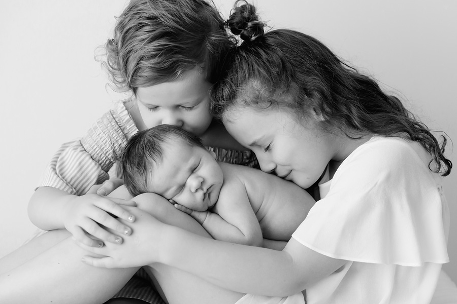 Seriously…does it get any better?! This session was just so beautiful, and all captured in my beautiful studio space in Albury. Watching these beautiful girls with their new baby brother was just the sweetest thing. Even the threat of newborn poop and a white dress didn’t hold them back – although it was deciding factor...